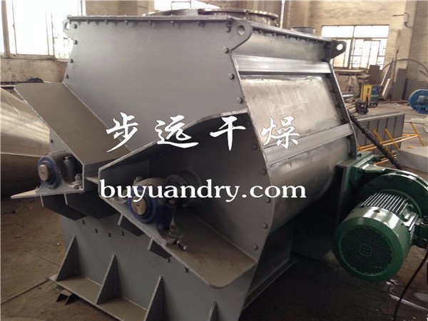 本系列混合机以强烈、高效混合为特点、卧式筒体内两根搅拌等速反向旋转,上特殊布置的桨叶确保物料径向、环向、轴向三向运动,形成复合循环,在极短的时间内达到均匀混合。
